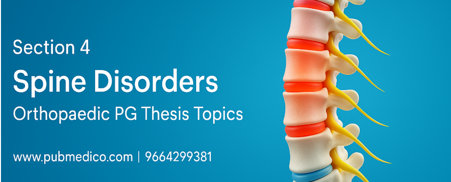 Choosing the right orthopaedic PG thesis topic is the first step toward a successful postgraduate career in MS or MD Orthopaedics. A strong research title reflects your clinical curiosity, analytical skills, and contribution to evidence-based orthopaedic practice. Below is a comprehensive list of 100 trending Orthopaedic Thesis Topics for postgraduate students, divided into 10 research domains such as trauma, arthroplasty, spine disorders, sports injuries, and more. At PubMedico, we guide medical students in finding innovative, feasible, and publication-ready orthopaedic thesis topics across diverse domains โ€” from trauma and arthroscopy to spine and joint replacement.