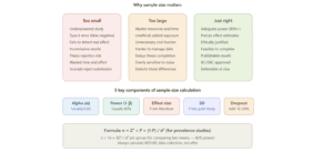 Sample size calculation is a critical step in designing any clinical study. A sample that is too small may fail to detect a real difference between groups — making your study “underpowered.” On the other hand, a sample that is too large wastes resources, time, and may even be unethical because you are exposing more patients to experimental treatments than necessary.